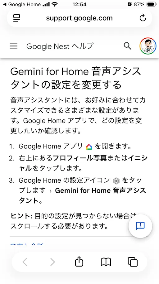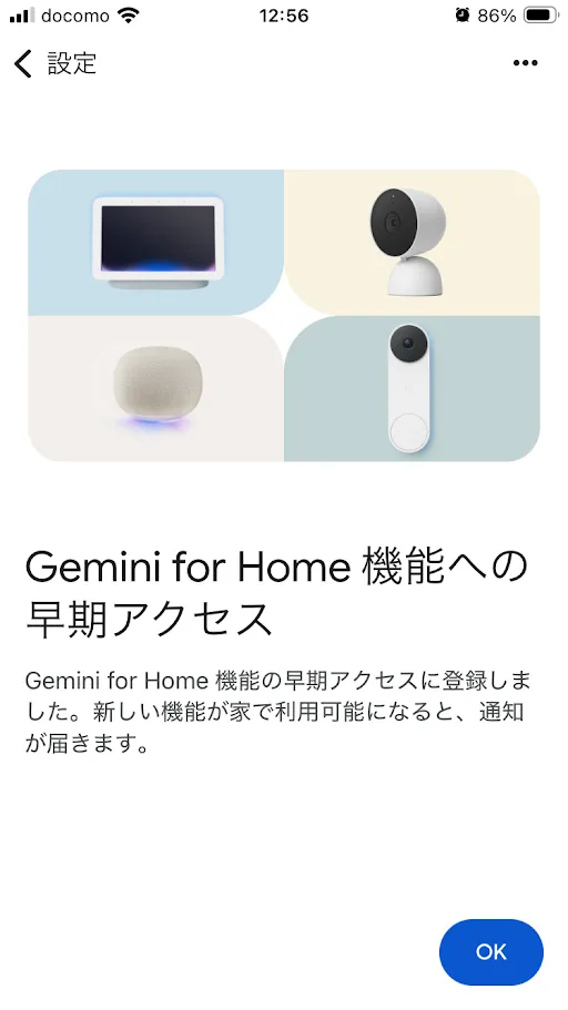 Gemini liveはGoogleHomePremium(1000円/月)に入らないと使えないのと、GoogleNestHub(第二世代)にはカメラがついておらず、Premiumの追加機能がもったいないという悩ましい点はあるが、ひとまずGoogle検索での回答ではなく、Geminiで回答がもらえるならフレンドリーな回答はあきらめることにする。