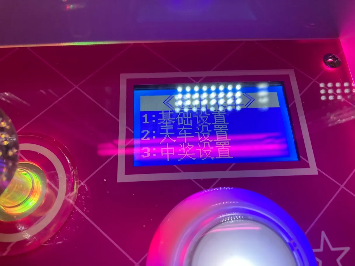 具体的には、前面パネルにプレイ回数が表示されている最初の画面の状態で、メニューボタンを長押ししていると「ピピッ」と音が鳴ります。その音がなった後(鳴り終わると行選択が下に移動しループし続ける挙動になります)に各項目を押すと詳細設定メニューが通常メニューの下に表示されます。